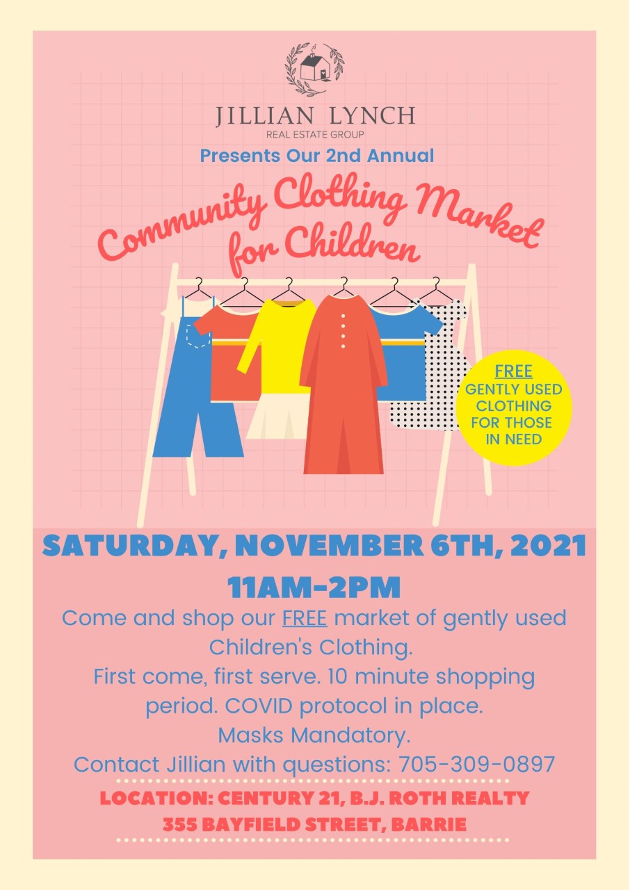 Saturday, November 6th from 11am-2pm, the Jillian Lynch Real Estate Group is hosting their 2nd annual Free children’s clothing market. Come and shop second hand clothing donated by the community.