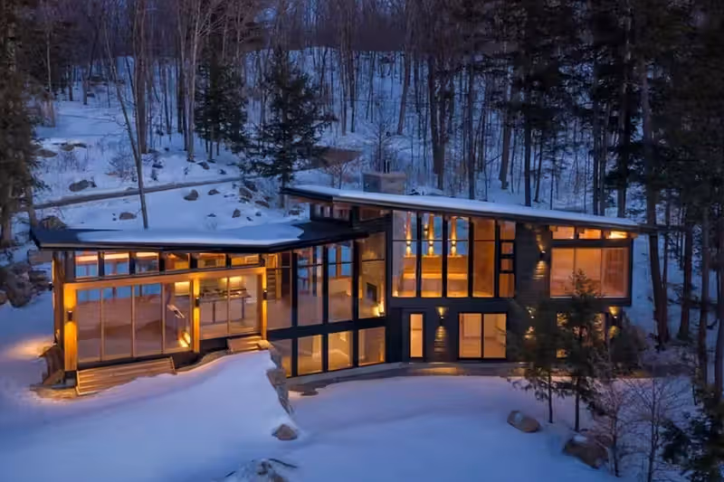 Barlochan Cottage sits on Walkers Point in Lake Muskoka and looks exactly like what happens when “luxury” and “rustic” agree to collaborate. The 2,500-square-foot retreat was designed by Toronto architect Trevor McIvor and features wall-to-wall windows perfect for soaking in nature… or dramatically staring into the distance like you’re in a slow-burn TV moment.